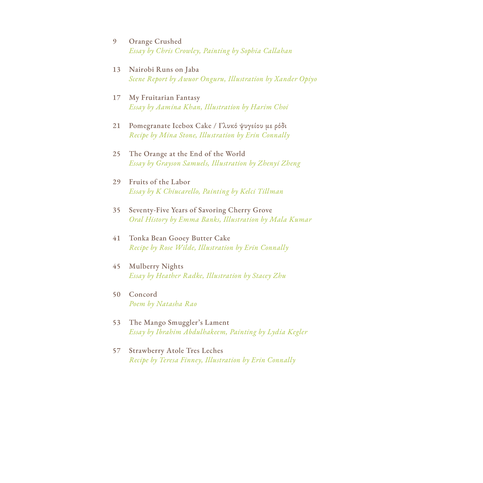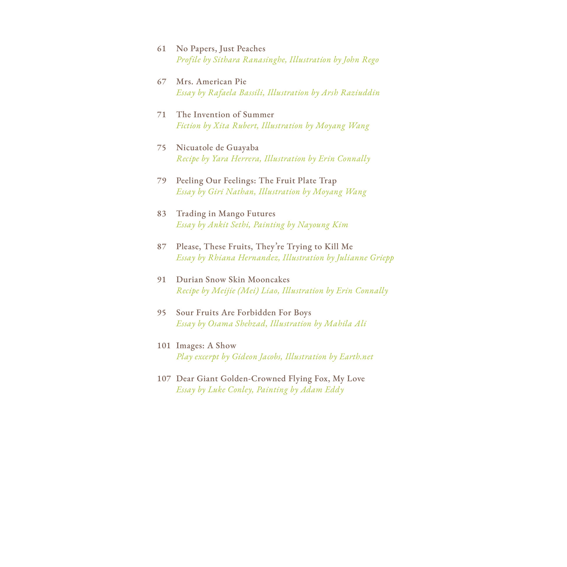 - Recipes to fuel our deepest produce cravings: durian snow skin mooncakes by Mei Liao, pomegranate icebox cake by Mina Stone, gooey tonka bean butter cakes by Rose Wilde, guava nicuatole by Yara Herrera, and strawberry atole cake by Teresa Finney